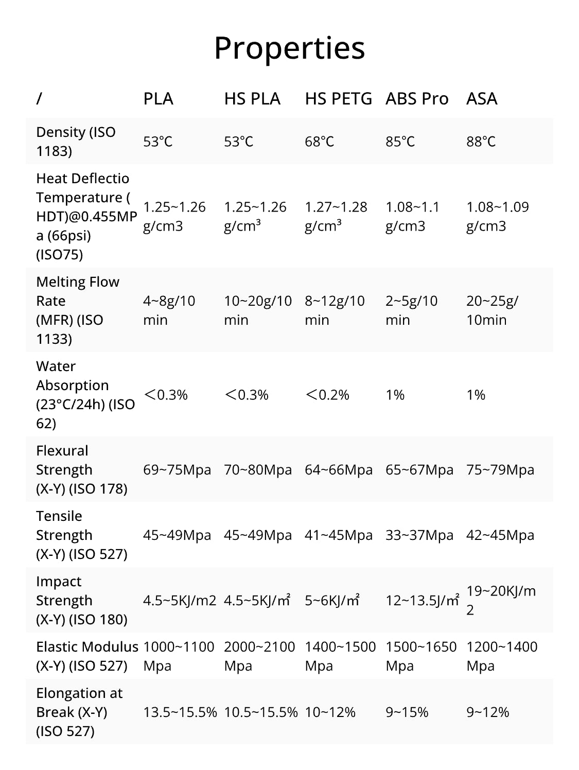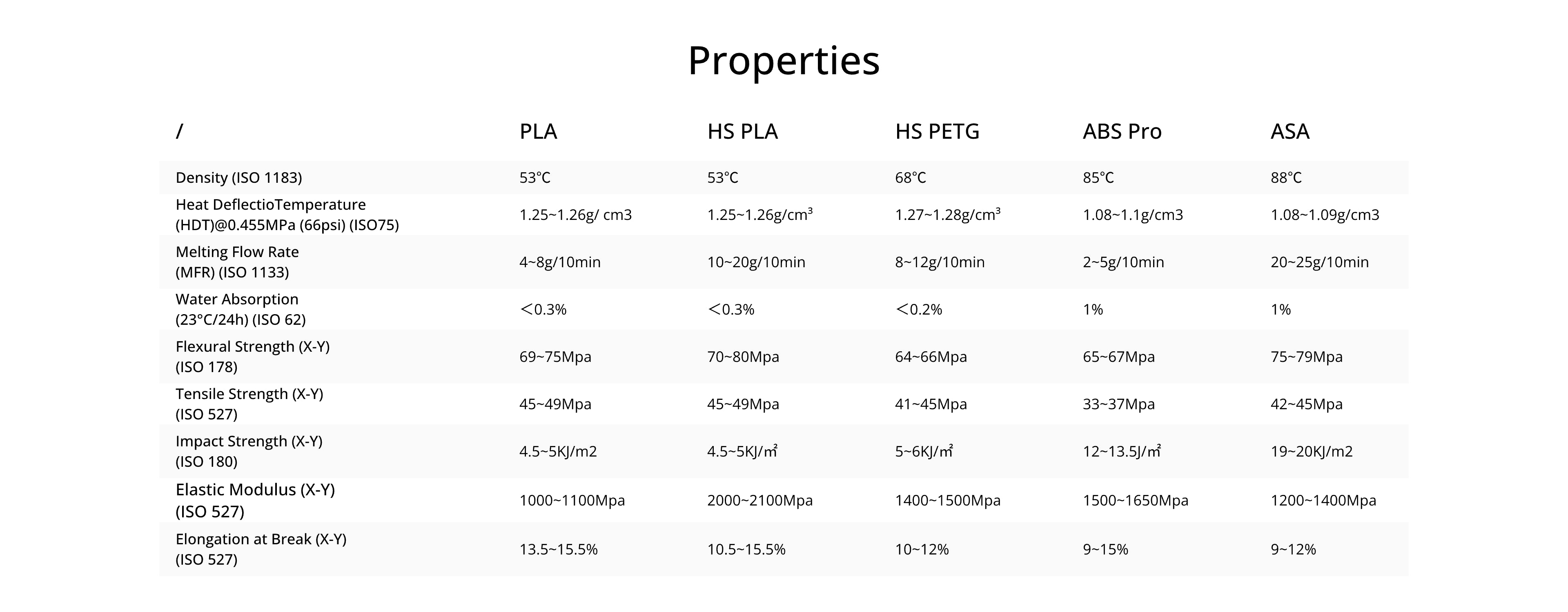A: The overall performance differences are not significant. If you want your printed models to be more impact-resistant, choose PLA Pro. If you have high-speed printing needs, such as running a business that requires quick model production, HS PLA will be a good choice. You can make a choice based on the specific properties of each filament.