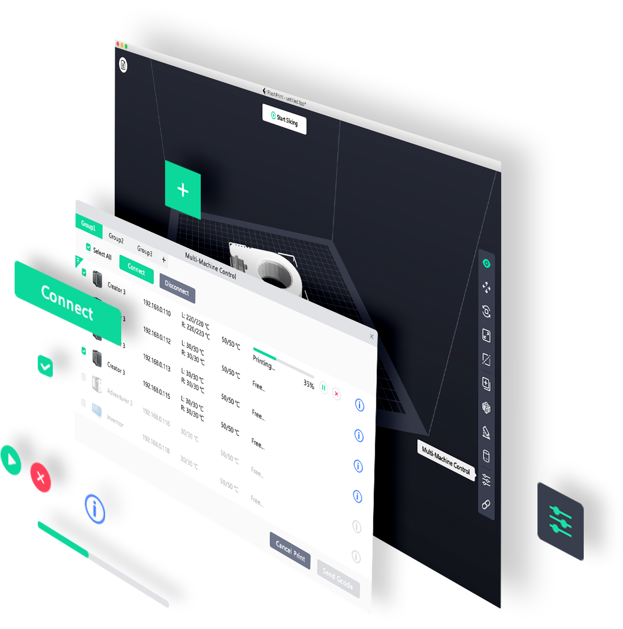 A coherent workflow helps you work more effectively. You can save time by opening the print files stored in the memory list from FlashPrint 5, which is convenient, fast and efficient.